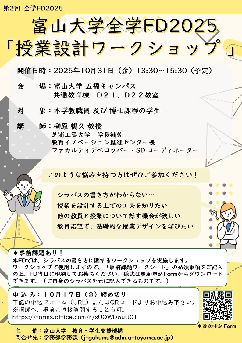 10月31日(金)に、教育・学生支援機構主催による全学FD研修会を開催します。