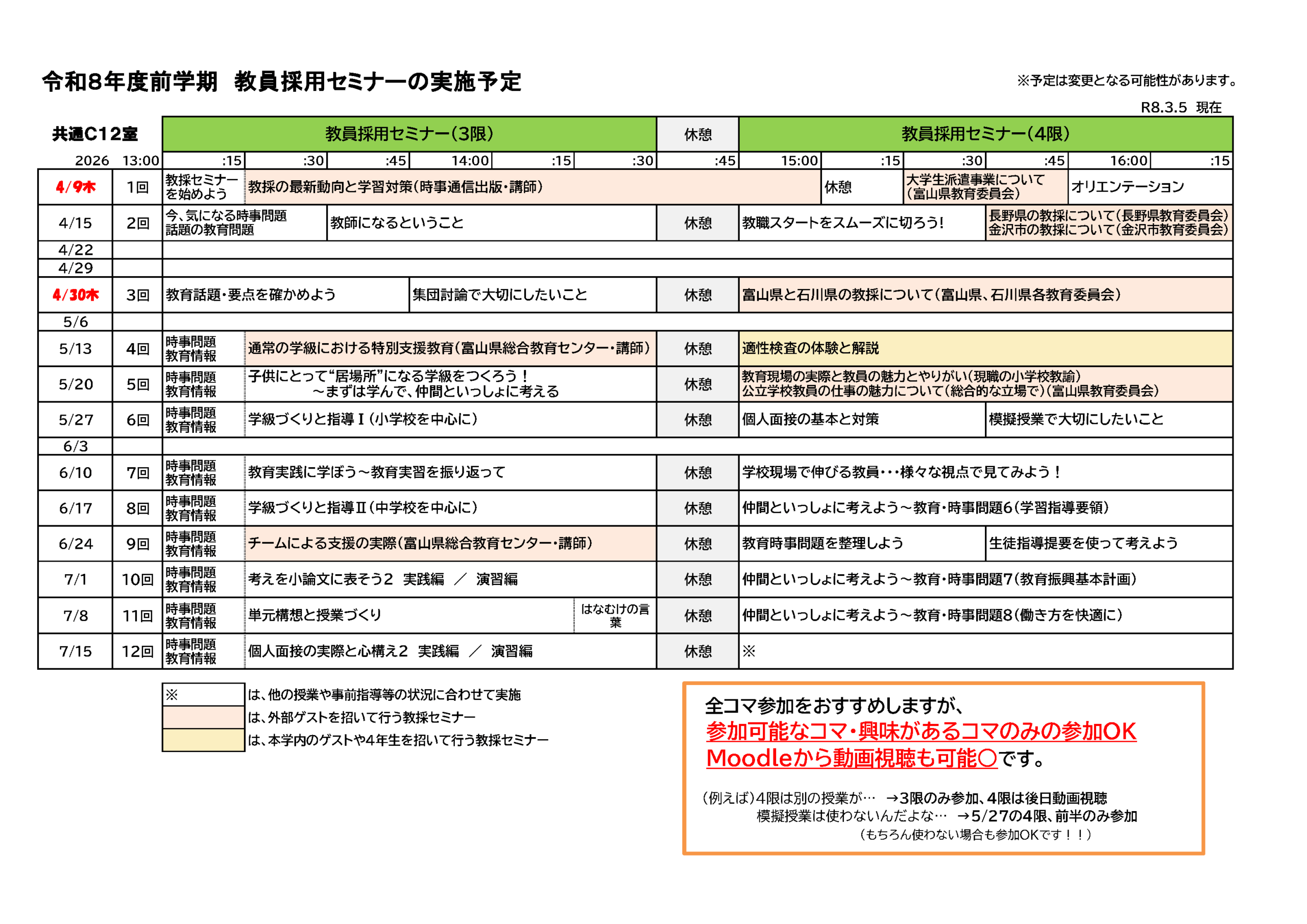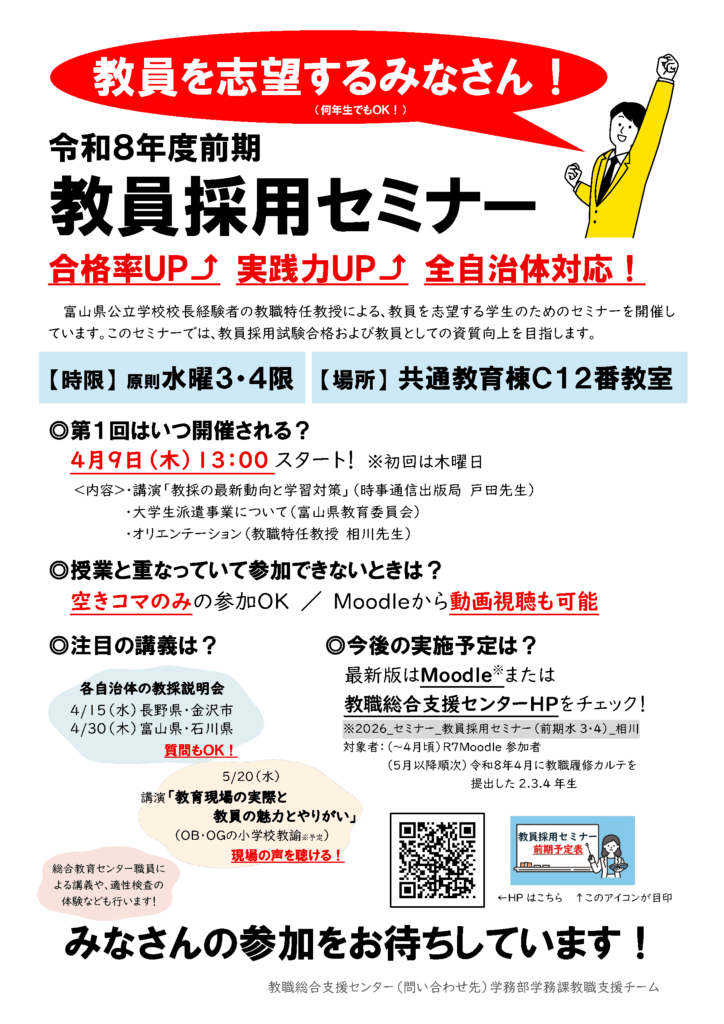 4月9日(木)より令和8年度前期教員採用セミナーがスタートします!